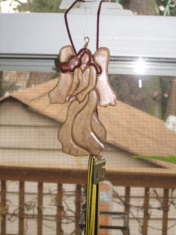 The simplest is to hang your ornament. This client decorated her window with her angel ornament.